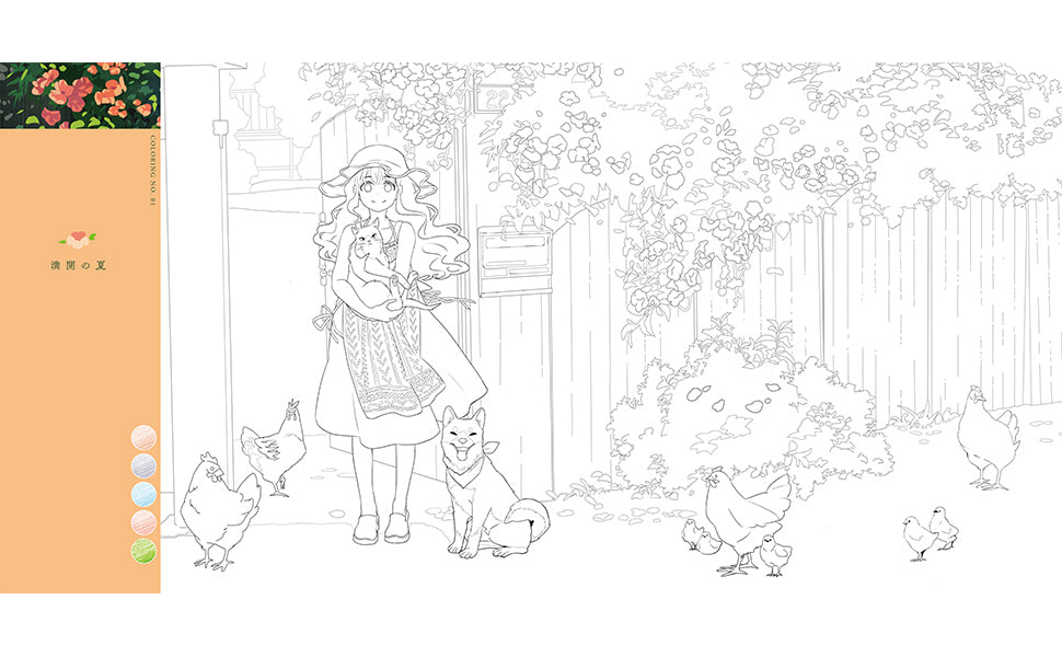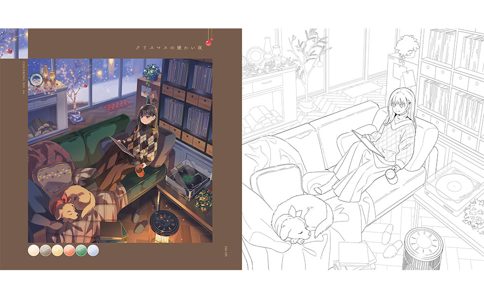 A girl bathed in the gentle light of spring, wildflowers blooming in a refreshing summer alley, a cup of coffee to enjoy in a refreshing autumn, a puppy playing in fluffy snow, etc.... Enjoy art therapy time coloring freely as your heart desires, while feeling the unchanging happiness in the changing seasons and thinking about the girls' daily lives and seasonal stories.