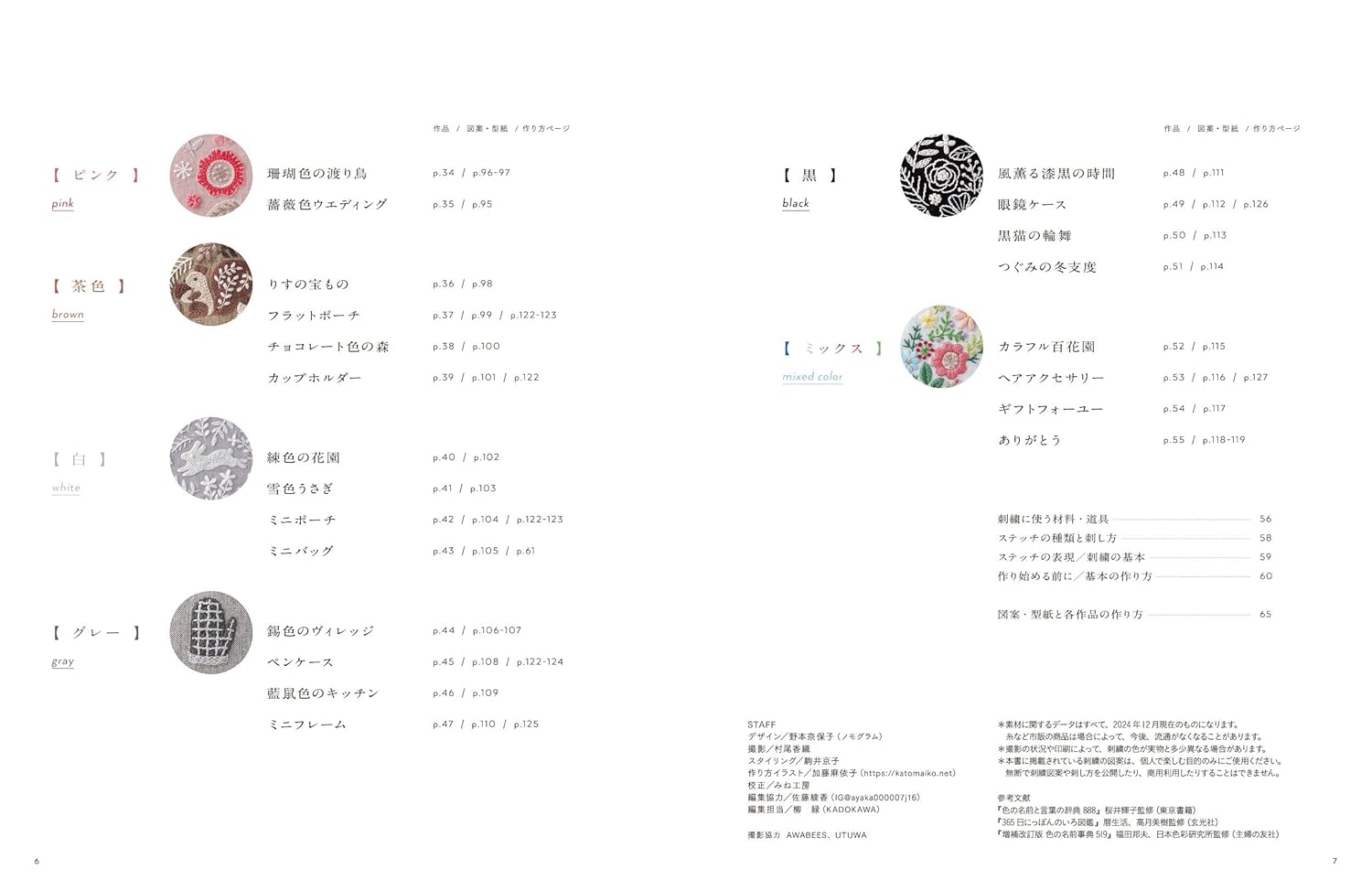 The patterns and patterns are full-sized, and how to sew the small items is also introduced. Please enjoy the world of colors that embroidery thread can create in your own way.