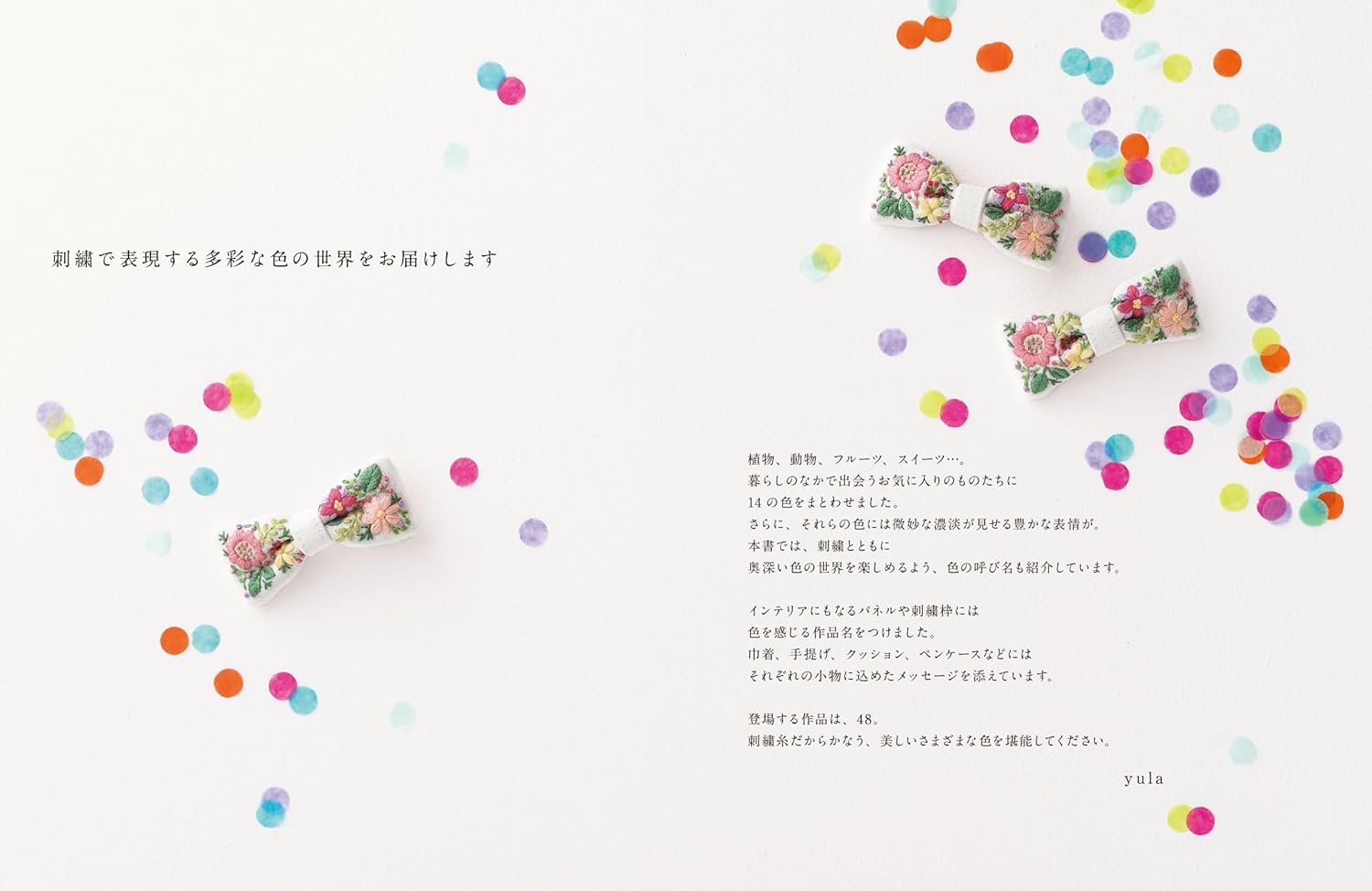 14 colors are used to decorate favorite things that you come across in your daily life. Furthermore, these colors have rich expressions with subtle shading. Only embroidery artist Yula can express such a wide variety of colors through embroidery!