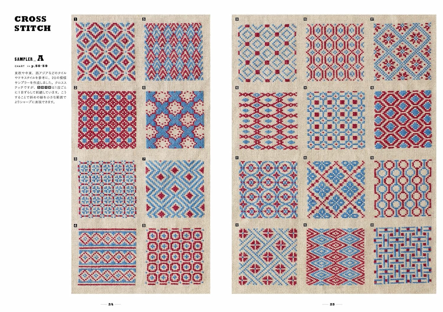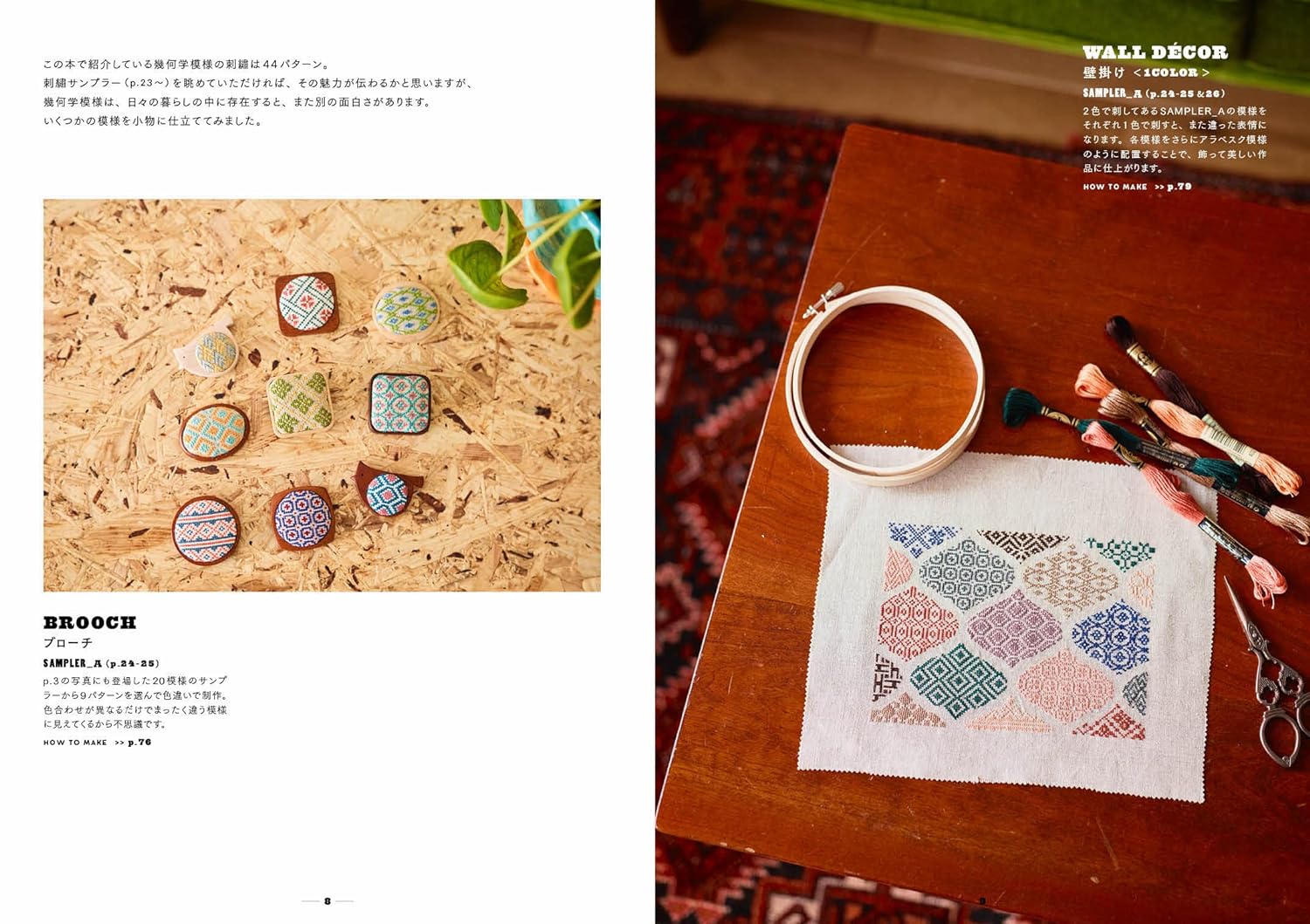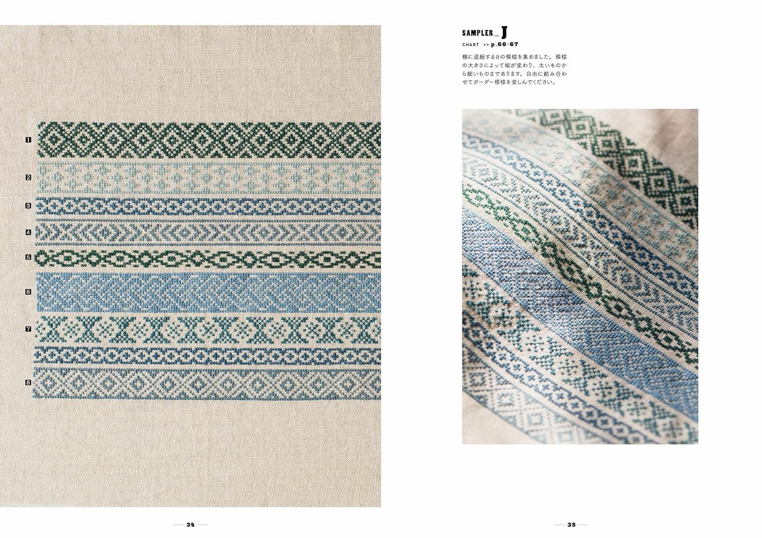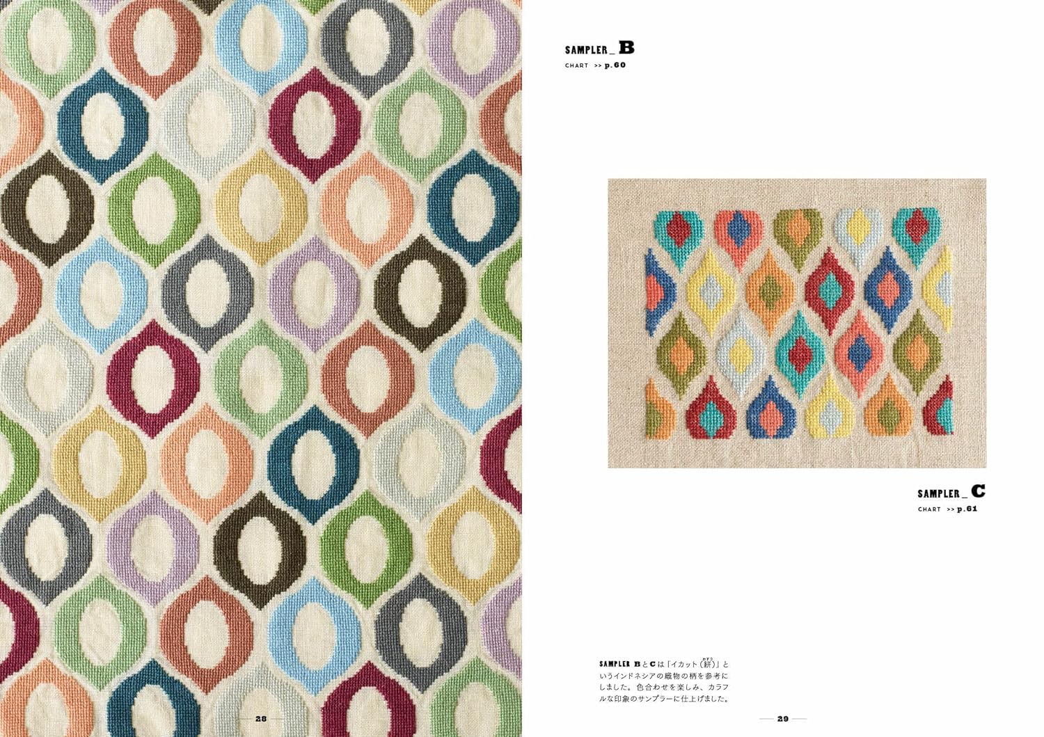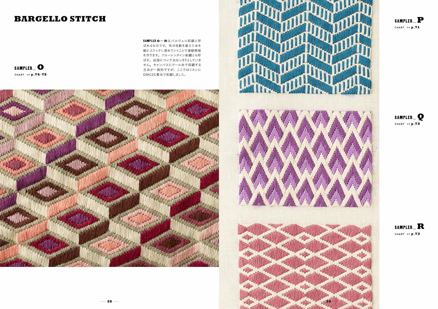 Cute geometric patterns embroidered with cross stitch and bargello stitch Japanese Craft Book