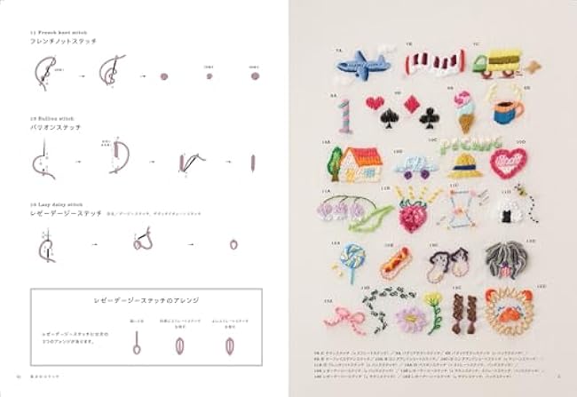 This book introduces 100 stitches that will make embroidery much more fun, with illustrations of how to sew and samplers (examples of use). This is a "stitch textbook + idea collection" that allows you to learn new stitches and see the fun of how to use them.