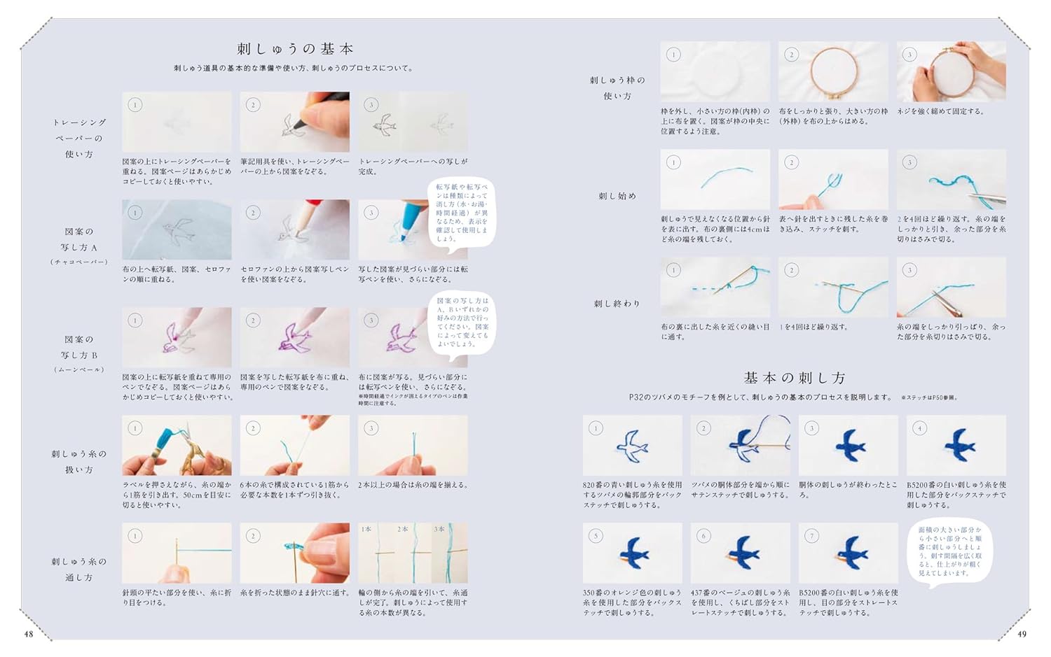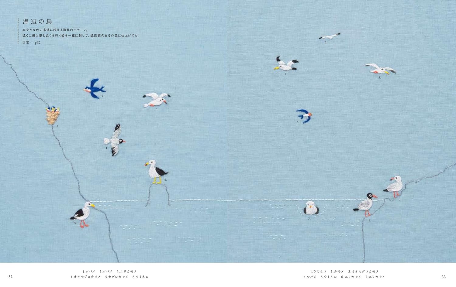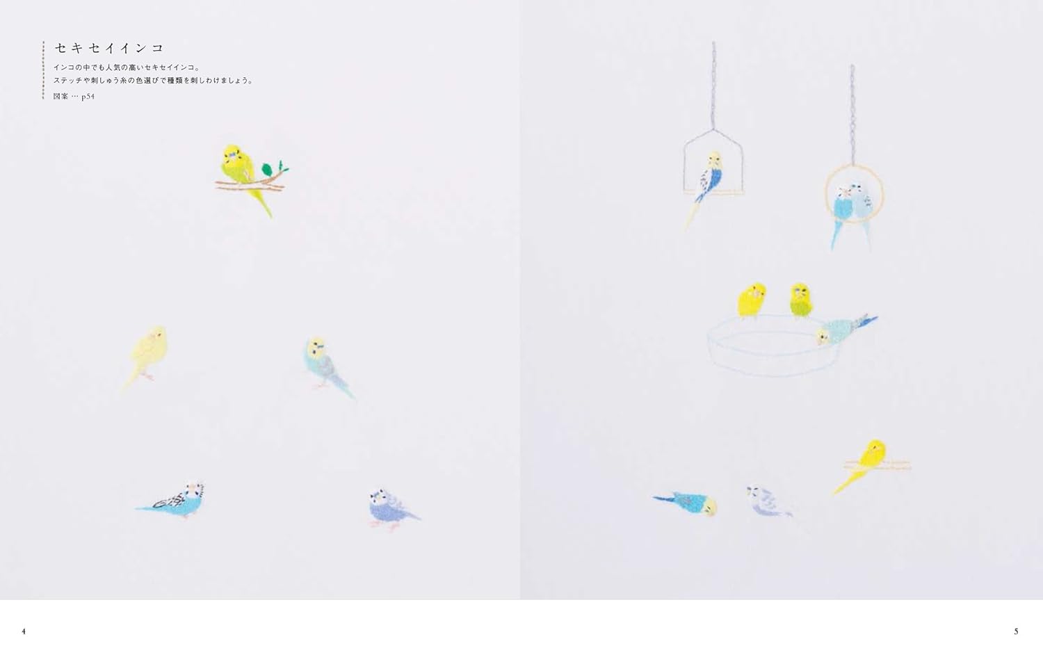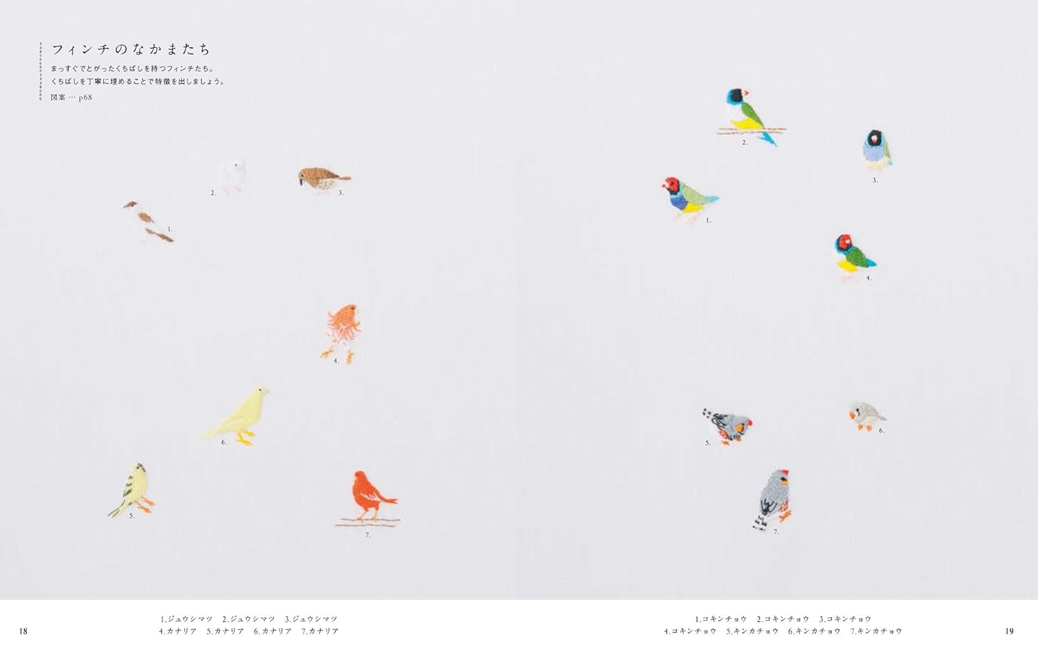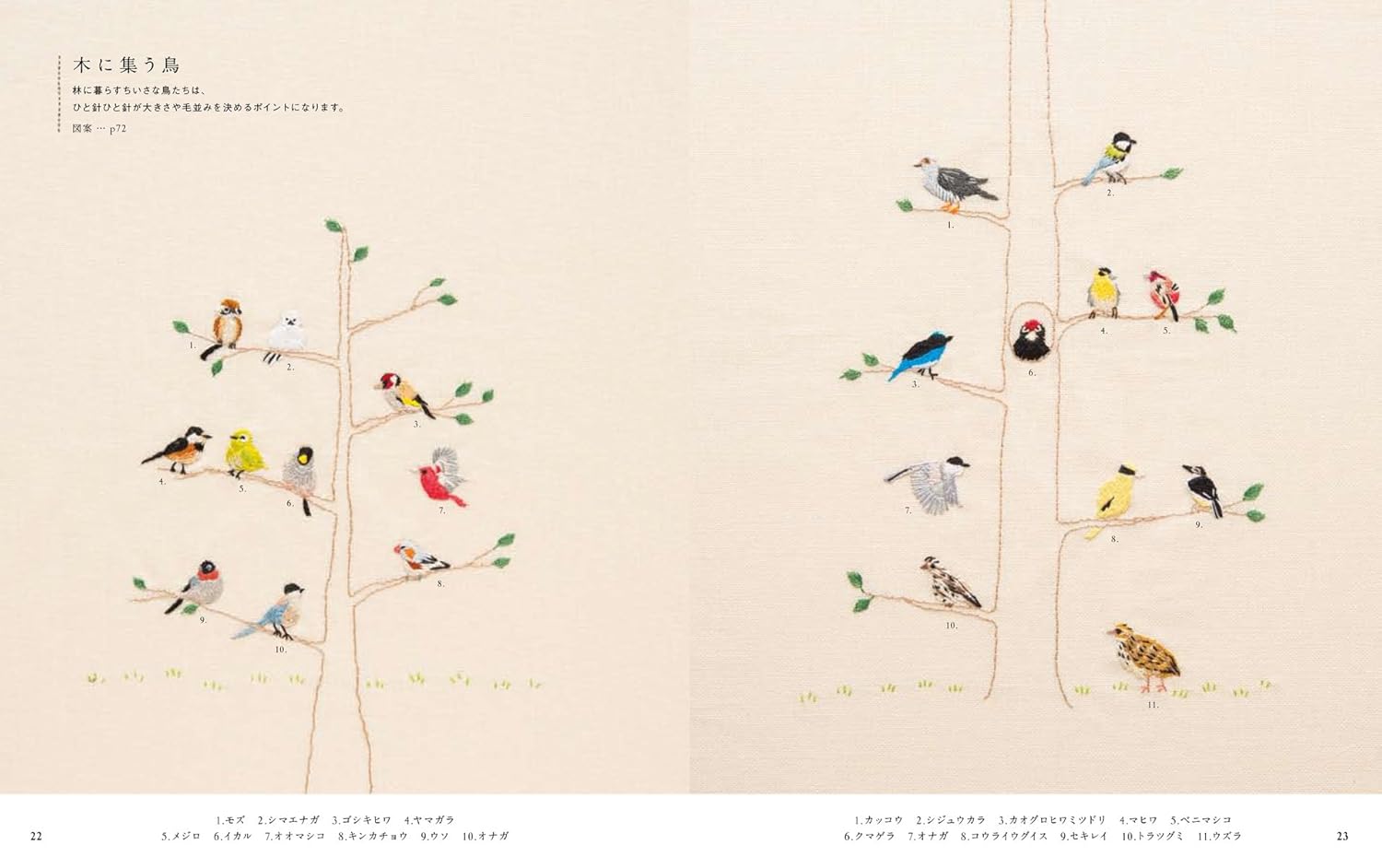 Small birds embroidery by Seibundo embroidery stitch - Japanese Craft Book^