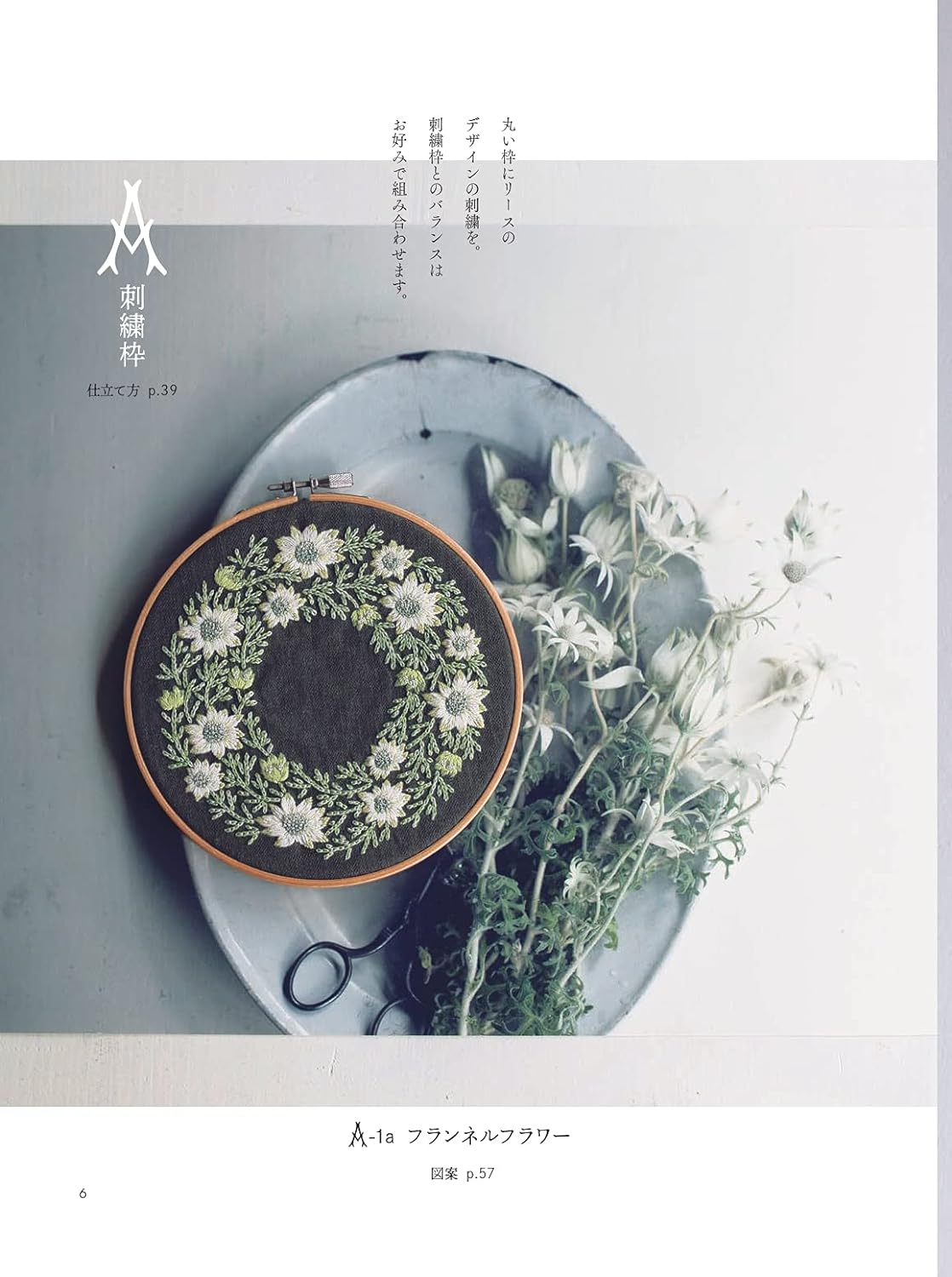 The first collection of works by yula_handmade_2008, who has 103,000 followers on Instagram. The gentle colors and plump flower embroidery are attractive. The items that are tailored include drawstring purses, handbags, embroidery hoops, and brooches, and you can enjoy a variety of variations by changing the designs and colors. Even with the same design, you can change the atmosphere by changing the color of the embroidery thread or the color of the base cloth, and you can enjoy embroidering with these changes.