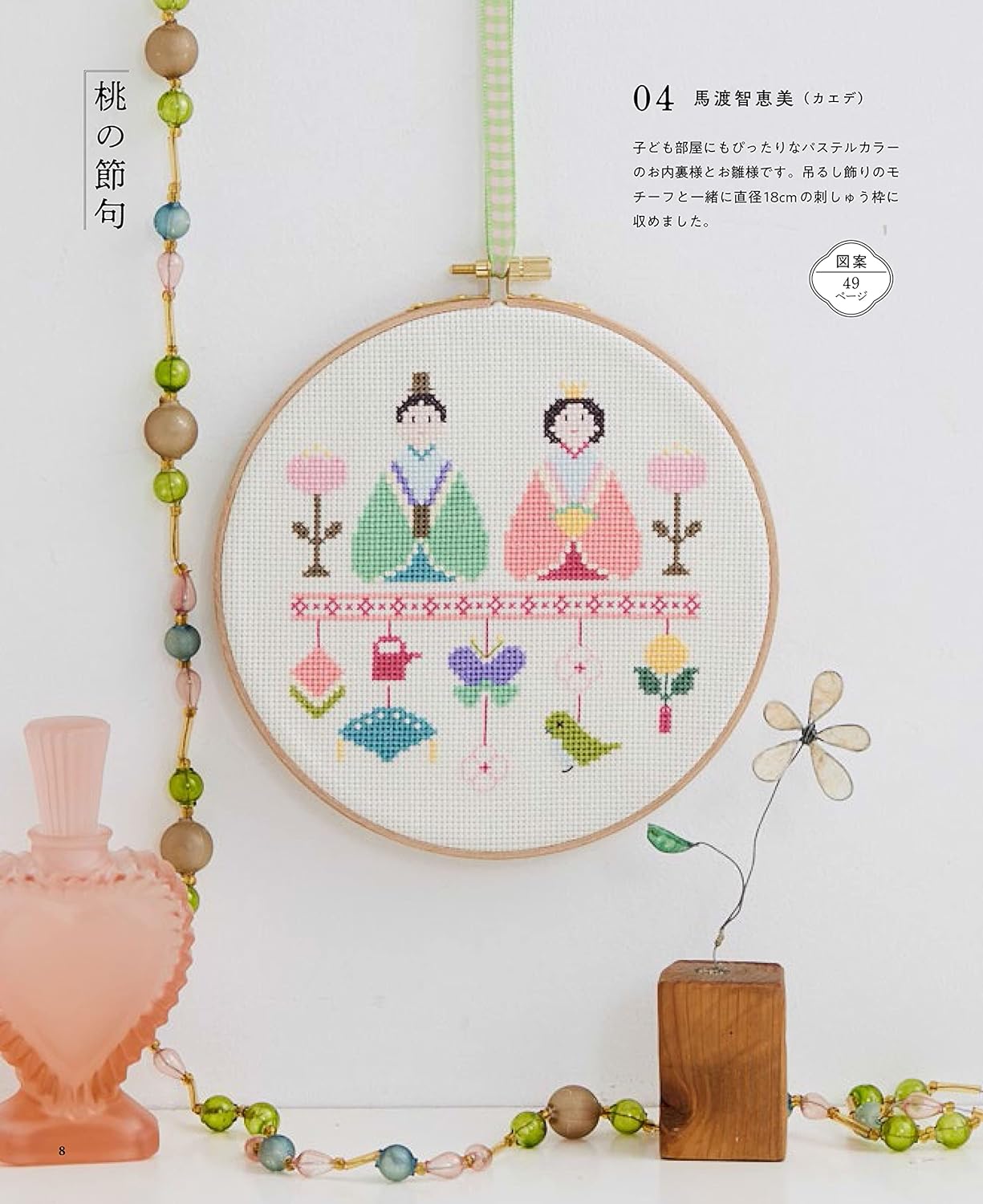 New Year's Day, Peach Festival, Boys' Festival, Halloween, Christmas...Cross stitch decorations that can be enjoyed in conjunction with seasonal events and seasonal calendars, and are perfect as gifts. There is also a zodiac motif that I want to make every year. The ``Embroidery Calendar'' and the ``Flower Almanac'', which collects birth flowers, can be stitched every month from January to December and completed over a year, or you can stitch only your favorite designs and arrange them into mini frames. can. Some of the popular works have been reprinted from back issues of the embroidery magazine "Stitch Idea". They don't require any complicated tailoring, such as frames, embroidery hoops, or bell pulls, so it's great that you can hang them up right after you've finished stitching. Includes basic cross stitch pages.