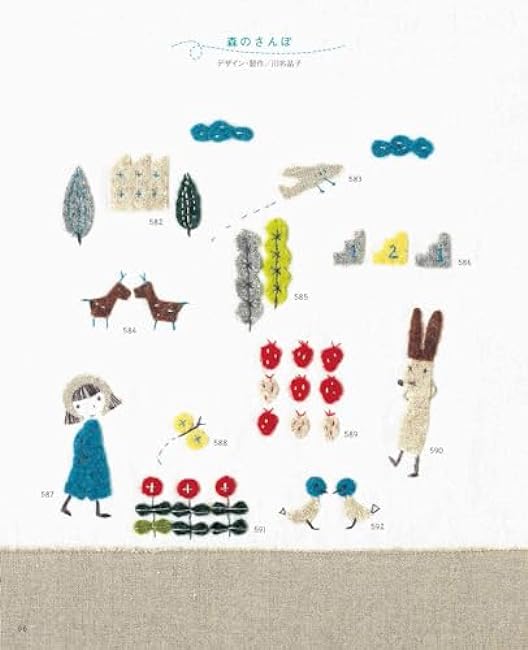 Recommended for use as a one-point embroidery design on bags, pouches, handkerchiefs, and other portable items, as well as shirts, hats, scarves, and other items. Also, it is nice to combine several designs and display them as interior decorations. This book is packed with samplers of hiragana and English letters, examples and instructions for making handbags and shoe cases, and basic pages that are useful for making kindergarten and school goods. A new edition of "650 One-Point Embroidery and Applique Designs" published in 2011.