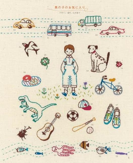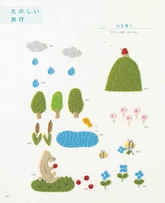 A total of 650 cute and useful one-point embroidery and applique designs are published in five themes: "Various Animals and Plants," "Congratulations on entering kindergarten or school," "Everyday life," "Fun travel," and "Various samplers."