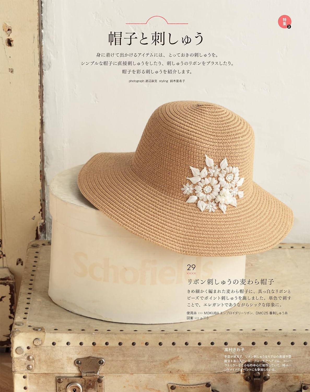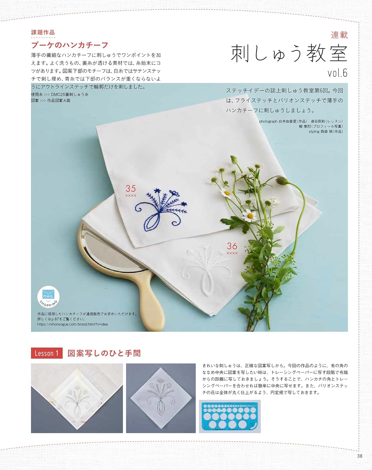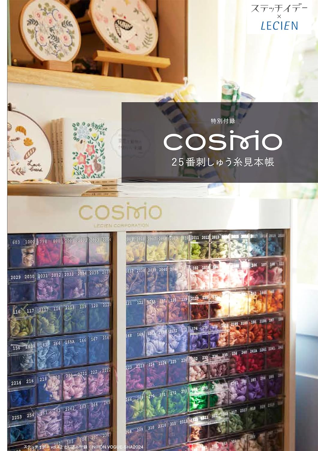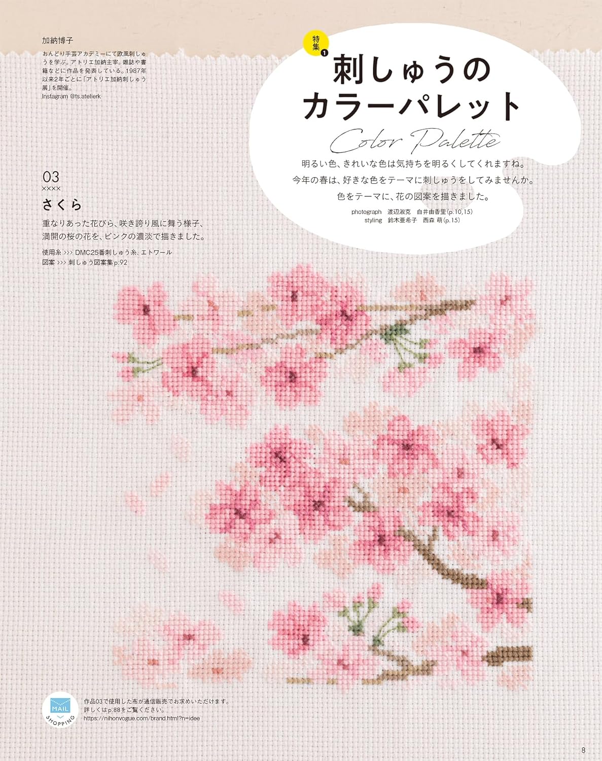The special feature is "Color Palette for Embroidery". With color as the theme, decide on the main color and enjoy embroidery. It is spring-like and revolves around floral designs. We will also introduce various types of embroidery, including suggestions for embroidering on slightly unusual materials, and hat embroidery for the upcoming season. A new series of SAL will also begin. Overseas coverage and process lessons are also available. A special appendix includes a COSMO No. 25 embroidery thread color sample book.