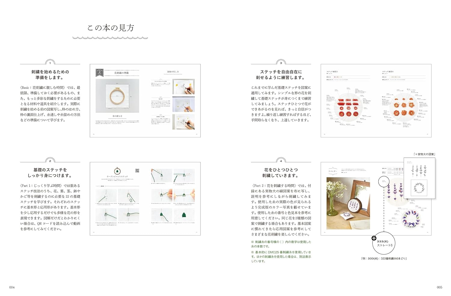 You can make a real embroidery work with this one book. Let's make colorful flowers bloom!