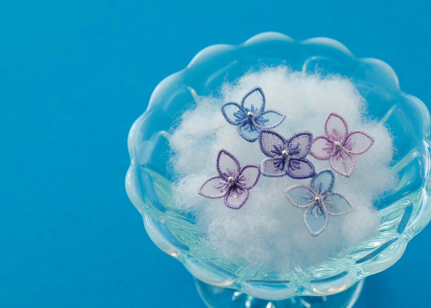 A collection of accessories made with organza embroidery by Kana, a popular embroidery artist who not only sells recipes and kits but also holds workshops.