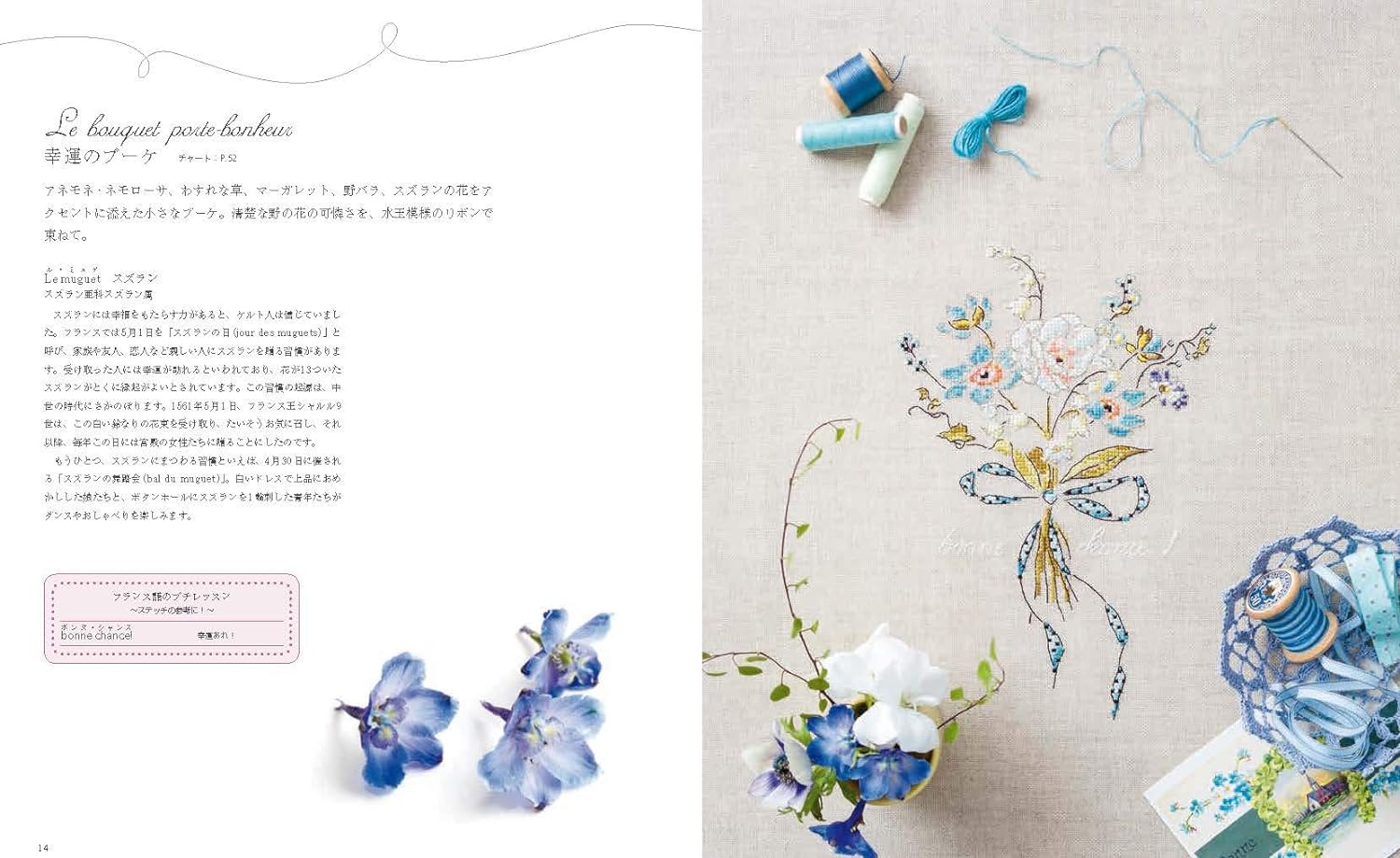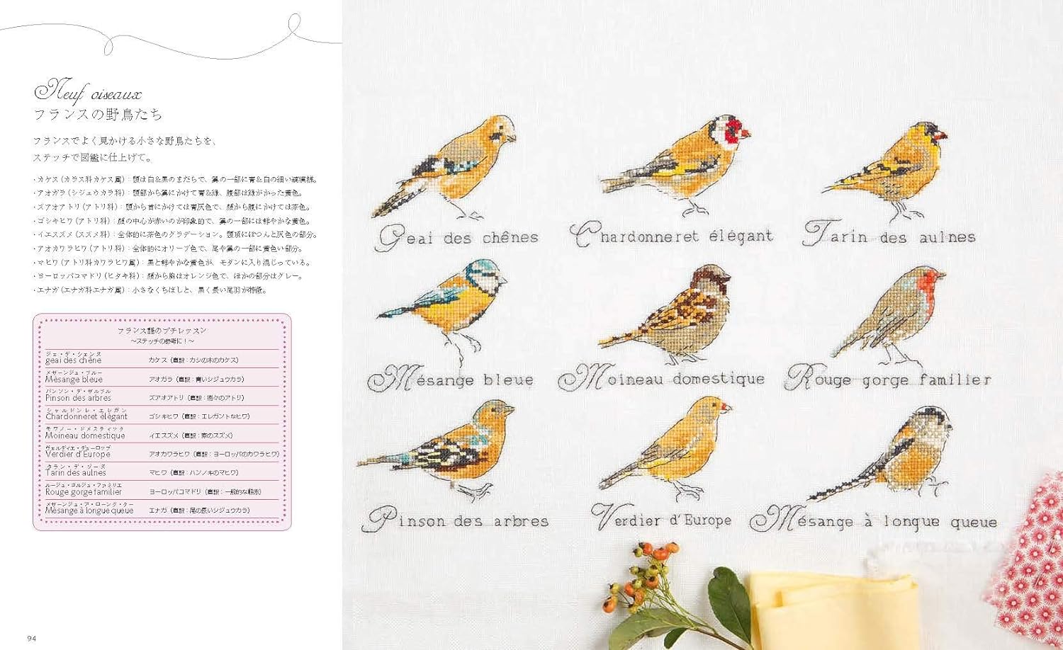A lovely world colored with 210 cross-stitch motifs of French flowers and birds. Japanese Craft Book