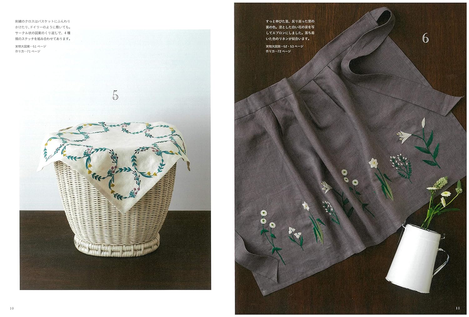 We also introduce ideas for stitching onto ready-made aprons and linen cloth, as well as arrangement works by changing the color matching of the base fabric and embroidery thread.