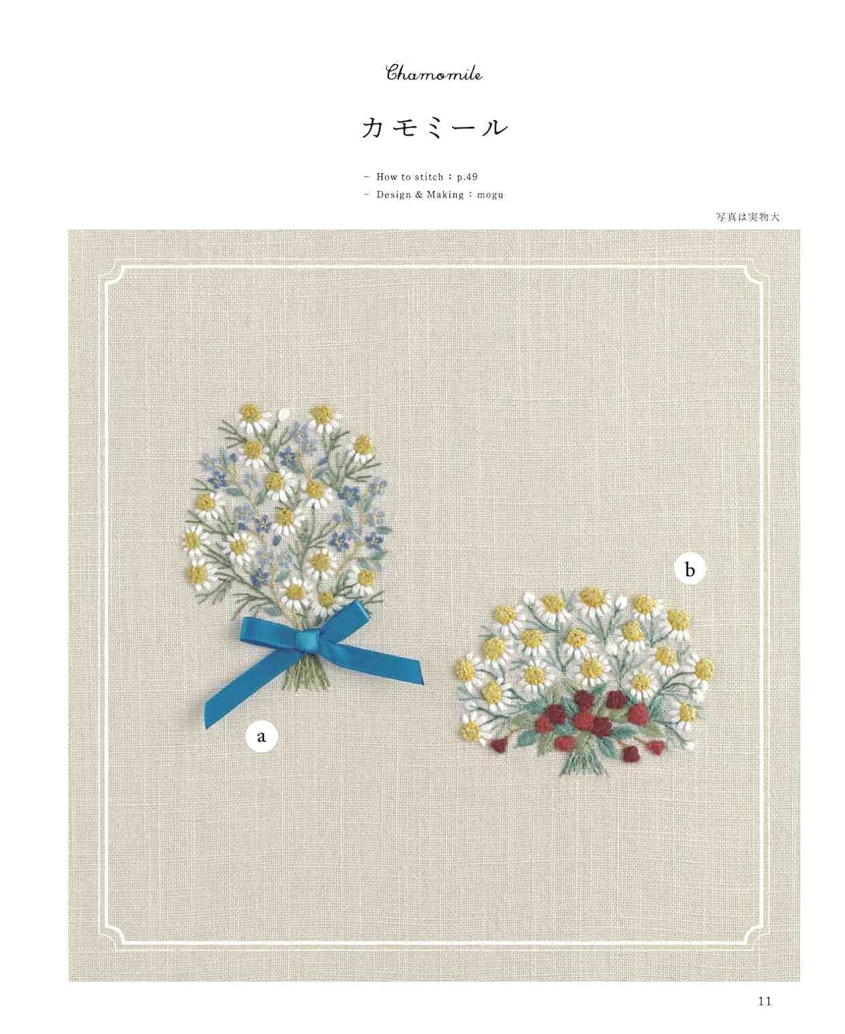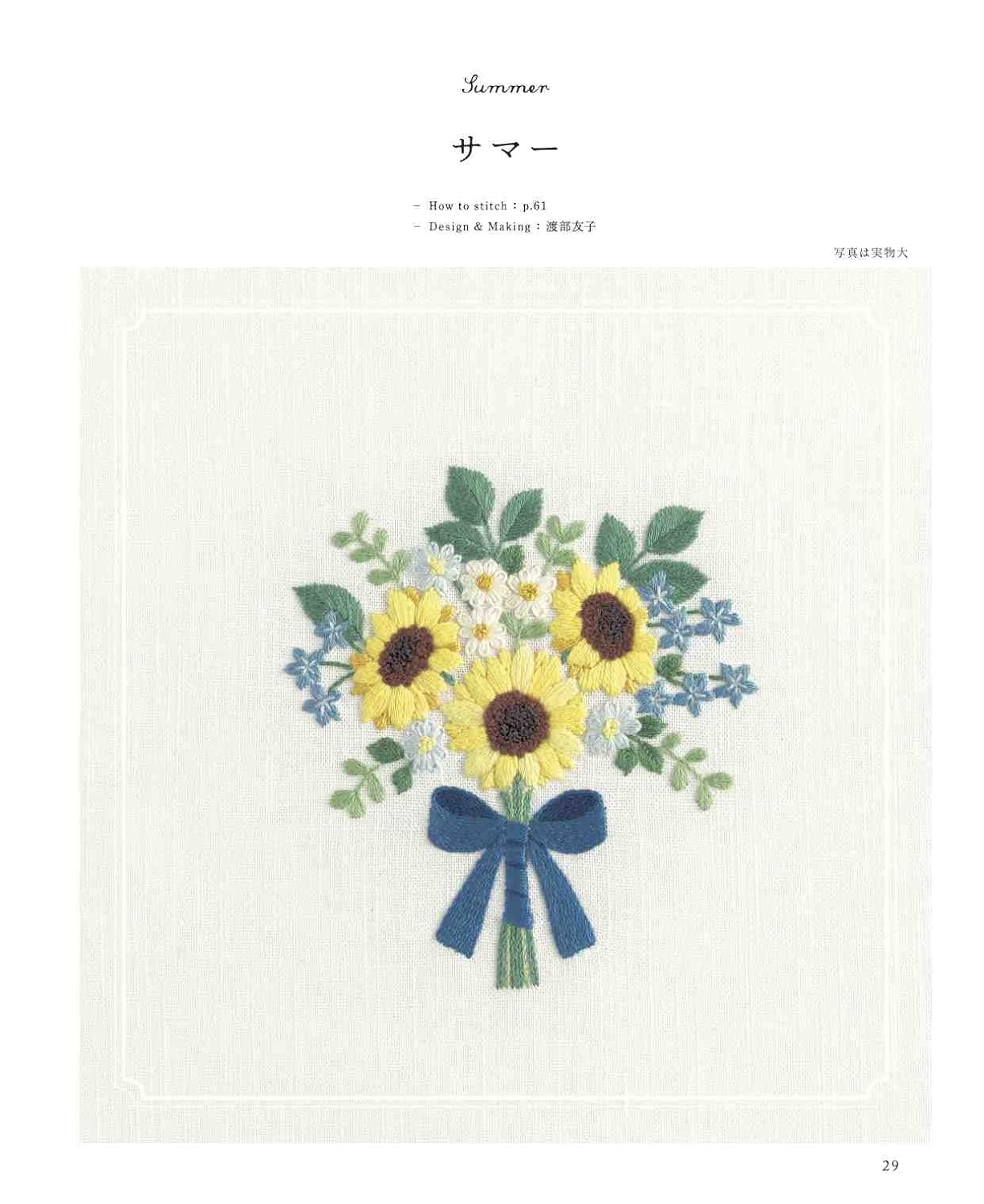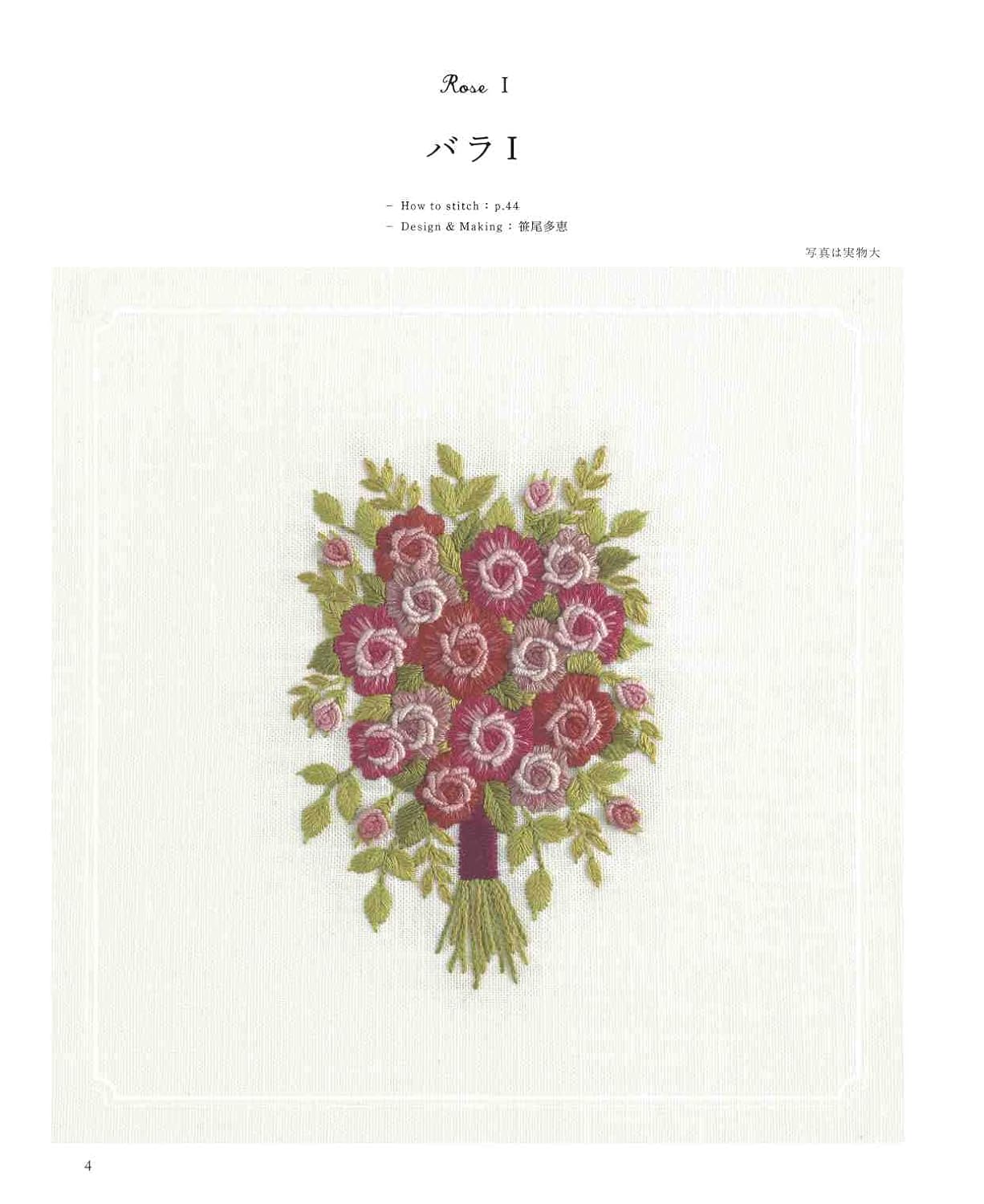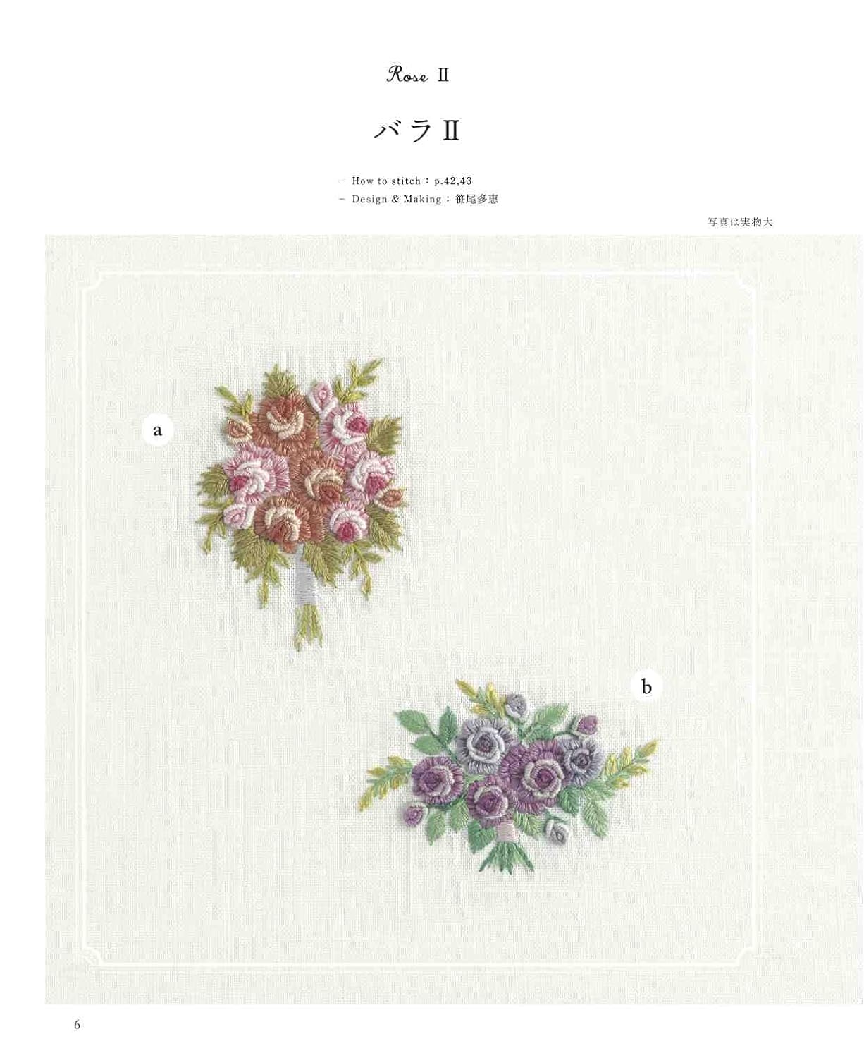 A collection of bouquet designs embroidered with European embroidery. We propose a bouquet design based on the concept that you can decorate your room by placing it in a frame, just like decorating a vase in your room. The pattern size is available in two sizes: small and large. Examples of use in embroidery frames and frames are also included.