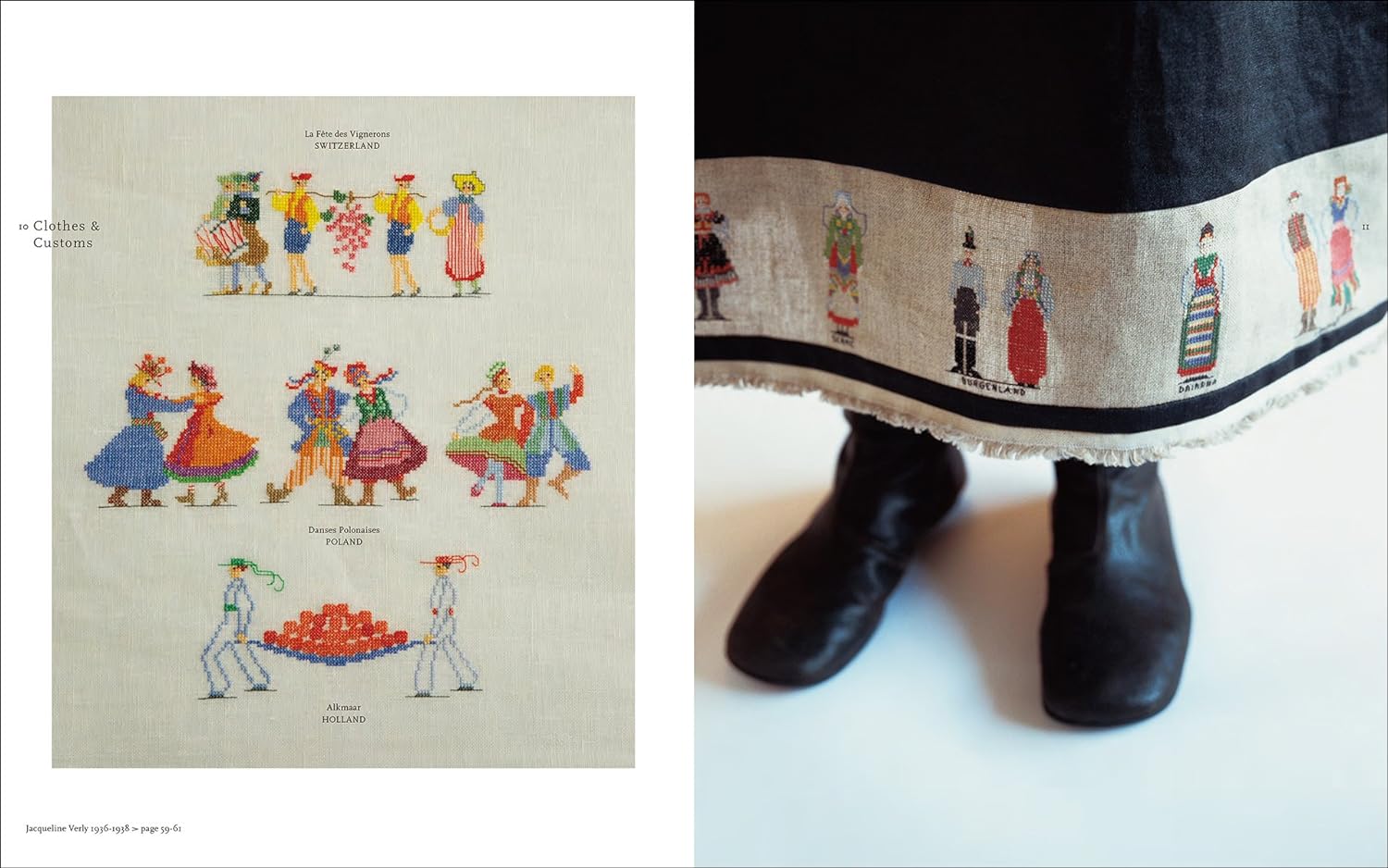 Nostalgic scenes from France in the 1930s are embroidered (p15).