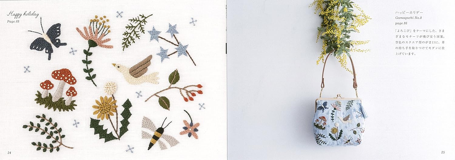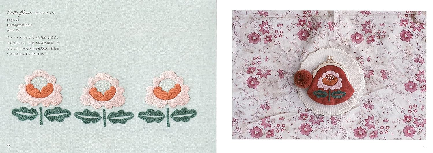 Embroidery and pouch by Yumiko Higuchi Amiko stitch - Japanese Craft Book