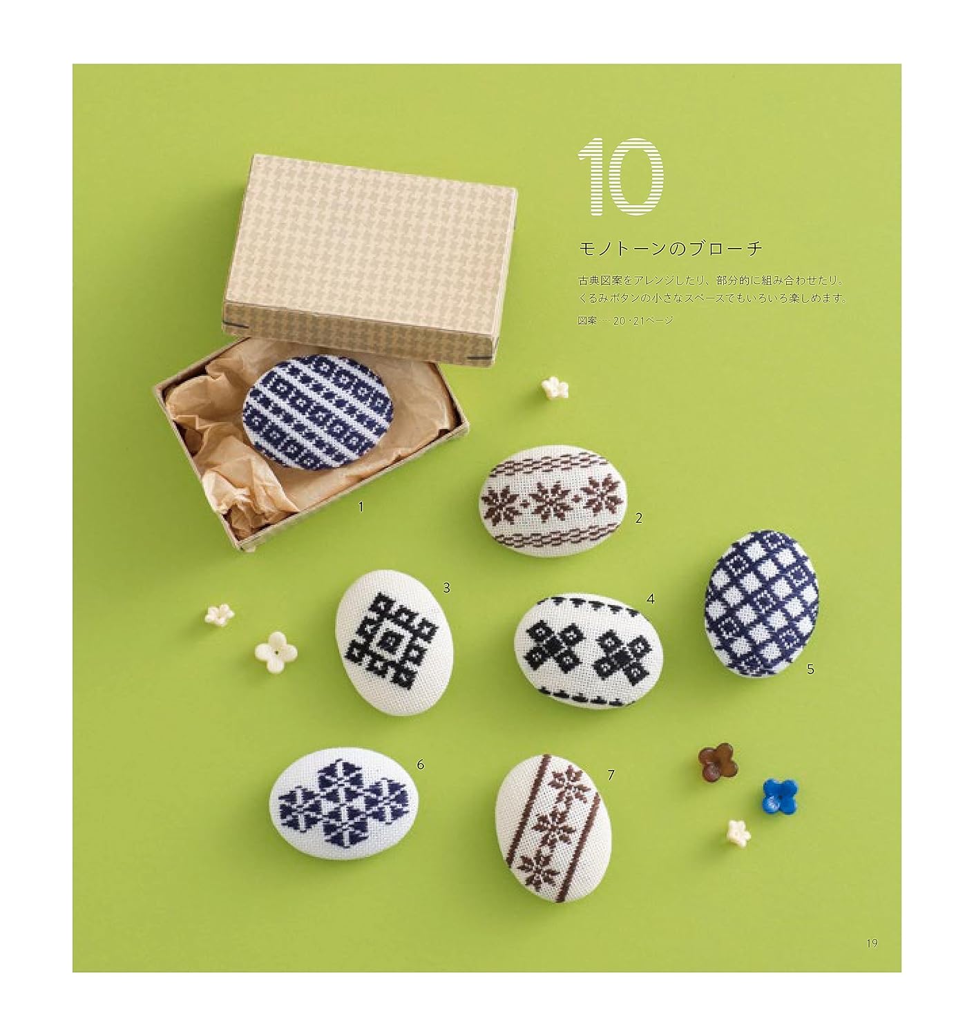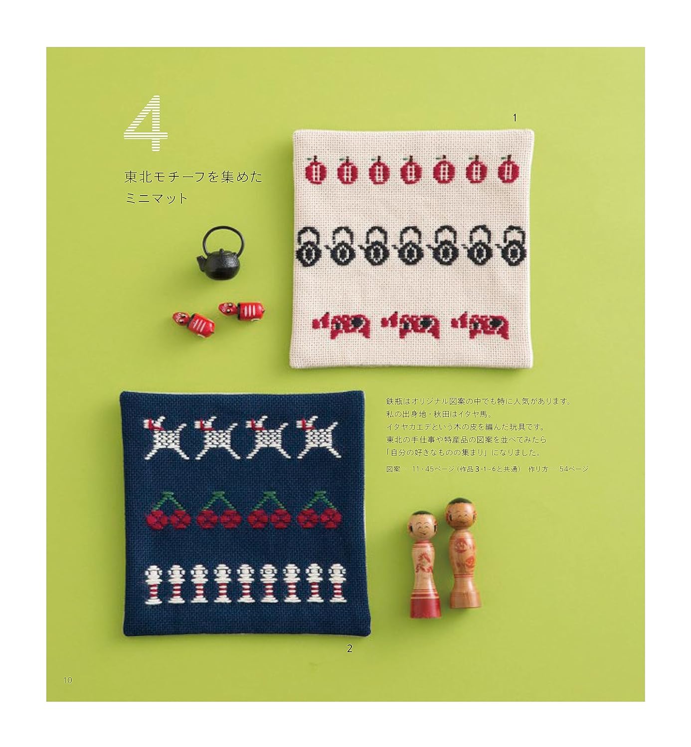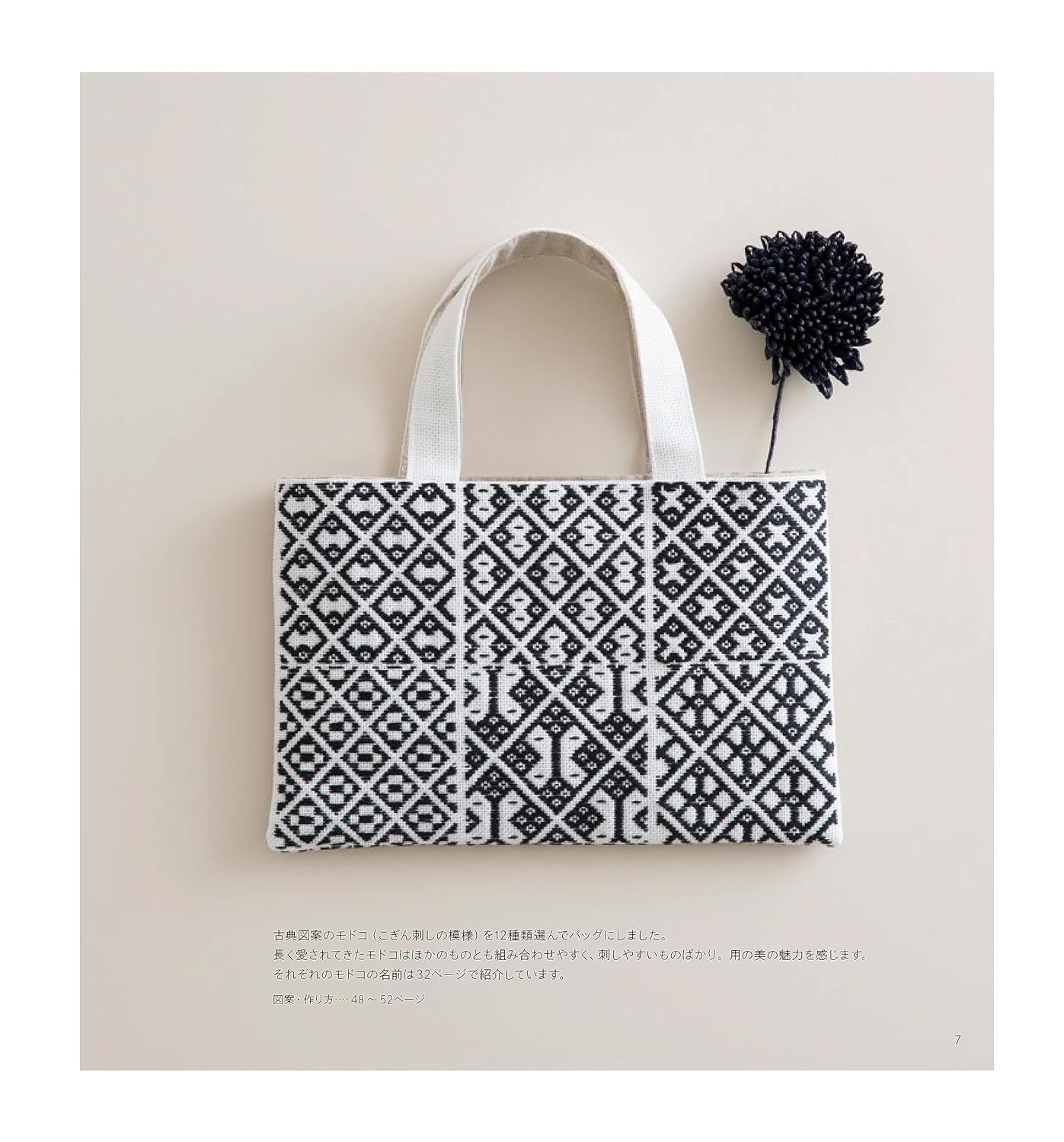 An enlarged and revised edition of 'Kogin Sashimi Pattern Asobi' published in 2016 with new designs and works. The author, Ueki Tomoko (Harinoto), is a popular koginsashi artist with unique original designs. It introduces many delightful koginsashi, such as apples, iron bottles, kokeshi, cherries, itaya horses, and red beko, inspired by the six prefectures of Tohoku. New local designs of fried shrimp, corn and peanuts have been added. There are also pieces with classic designs that have a sense of ease of piercing and beauty of use, such as 12 kinds of bags with traditional patterns and a fukusa for holding a ceremonial bag. About 50 small works are listed. Lessons on the basics of koginsashi and how to make Gamaguchi are included.