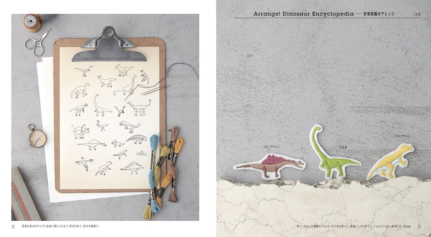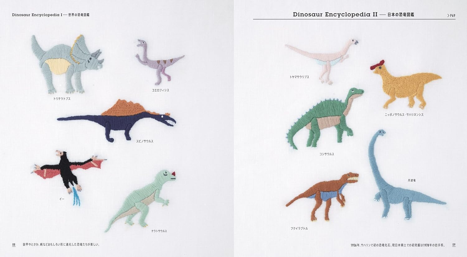 Embroidery and ABC creator Minako Chiba has brought back the ancient romantic dinosaurs to life, from their horns and heads to their tails.