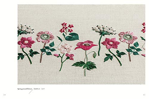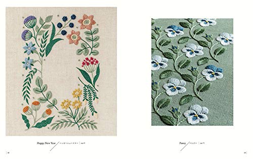 Beautiful flowers and leaves are embroidered in wonderful designs and colors. The stitches themselves are not difficult, so I think anyone can embroider with patience. This is a book that will make you want to take your time and carefully embroider each piece.