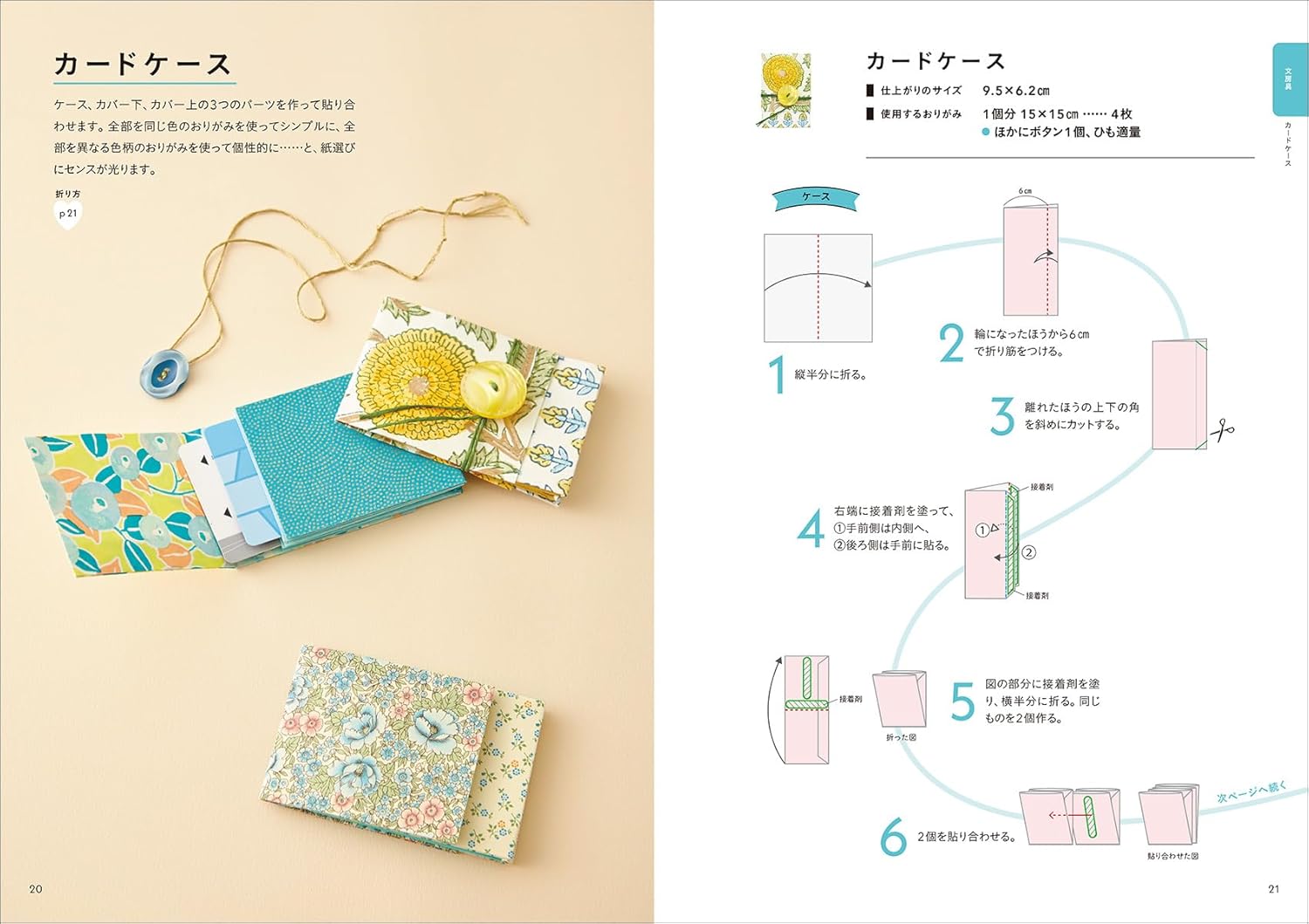 It introduces around 25 origami creations and how to fold them, ranging from everyday items such as card cases and bookmarks, to decorations for seasonal events such as fireworks garlands and Christmas advent calendars. There are also some accessories for adult women, such as small envelopes to use when splitting the bill and accessory cases to use when traveling. The selection of items and paper that will appeal to stationery and paper lovers will show you the world of sweet origami for adults. There are also items that you can enjoy folding together with your children, such as carp streamer decorations and Halloween candy containers.
