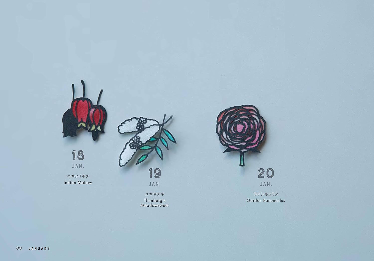 Introducing 366 days worth of flower cuttings that are small and can be enjoyed in a short amount of time. There are also 24 other cute works featuring glass bottles and bags as the main motifs, each decorated with flowers that bloom in each month.