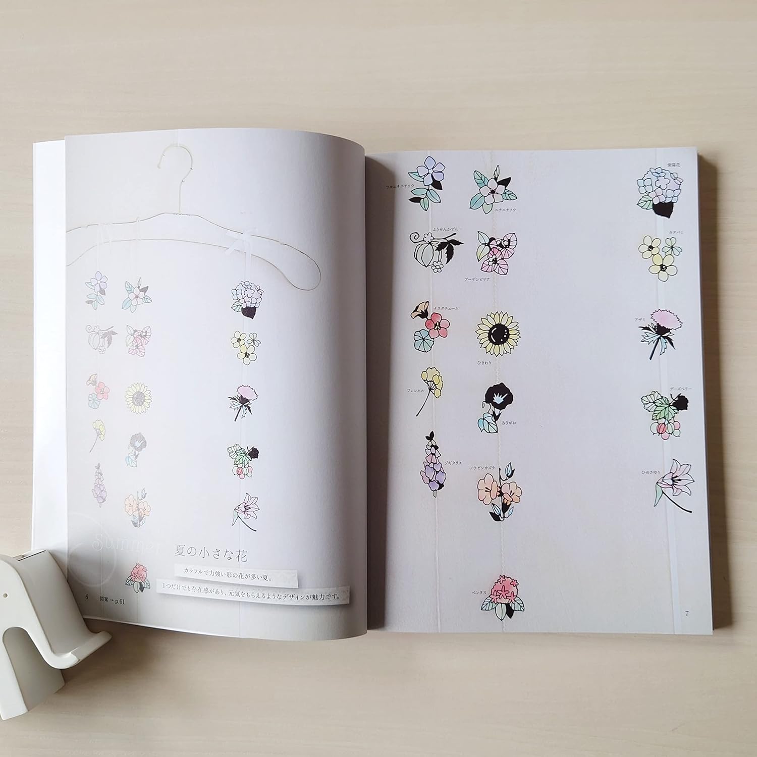 A large number of works are featured, from small motifs that can be completed in a short time, to works that can be enjoyed as cards, mobiles, cutlery stands, etc. Detailed explanations are provided with process photos, from the basics to tips for finishing beautifully.