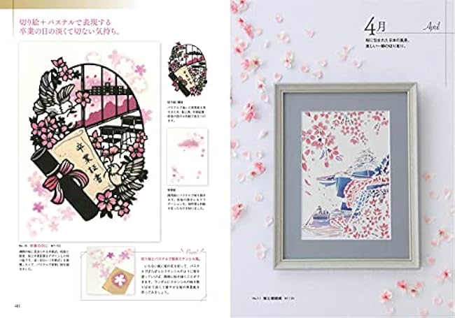 Tomomi Hiraishi's "Hanairo Kirie" 12 months Beautiful color papercuts that color the four seasons - Japanese Craft Book
