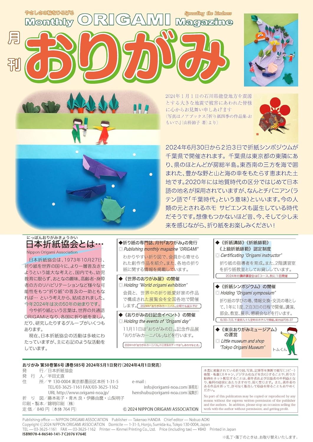 ``Monthly Origami'' is a fun magazine that includes many seasonal origami folding methods. Most of the works are creations of members. Every month, we introduce origami drawings of seasonal origami works, as well as posts by members of the Japan Origami Association, events, history, etc.