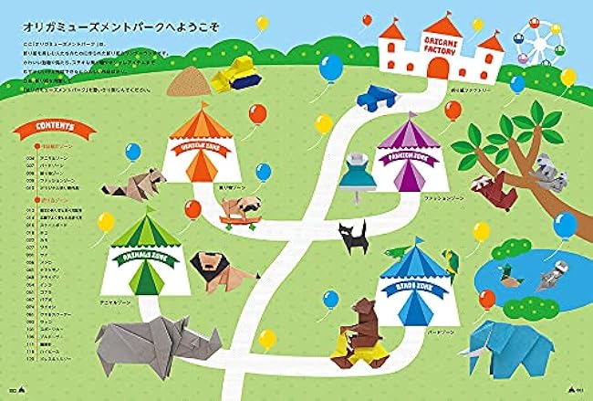 "Origami Park" is an origami wonderland created for people who enjoy origami. From cute animals and birds to wonderful vehicles and fashionable items, there are many works that are difficult but will be a joy to complete. Prepare your origami and enjoy "Oliga Amusement Park".