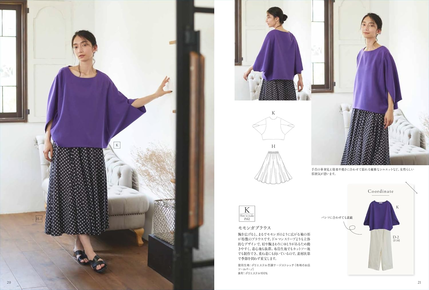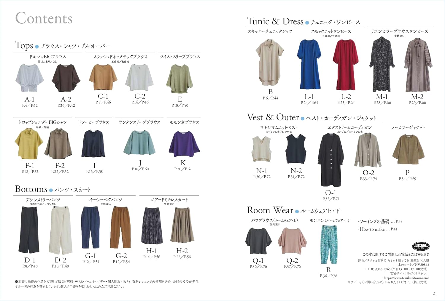 This book is a collection of patterns for making clothes from aviver, a specialty apparel pattern store. Aimed at women, including those new to sewing, it introduces easy-to-make, everyday adult clothing. The simple and sophisticated silhouettes, along with meticulous attention to detail, even in subtle transitions, are packed with the techniques of a pattern maker. A total of 29 items are featured, including blouses, dresses, tunics, pants, skirts, and cardigans, with variations in length and fabric. Appendix: Includes full-sized patterns in six sizes (S, M, L, 2L, 3L, and 4L).