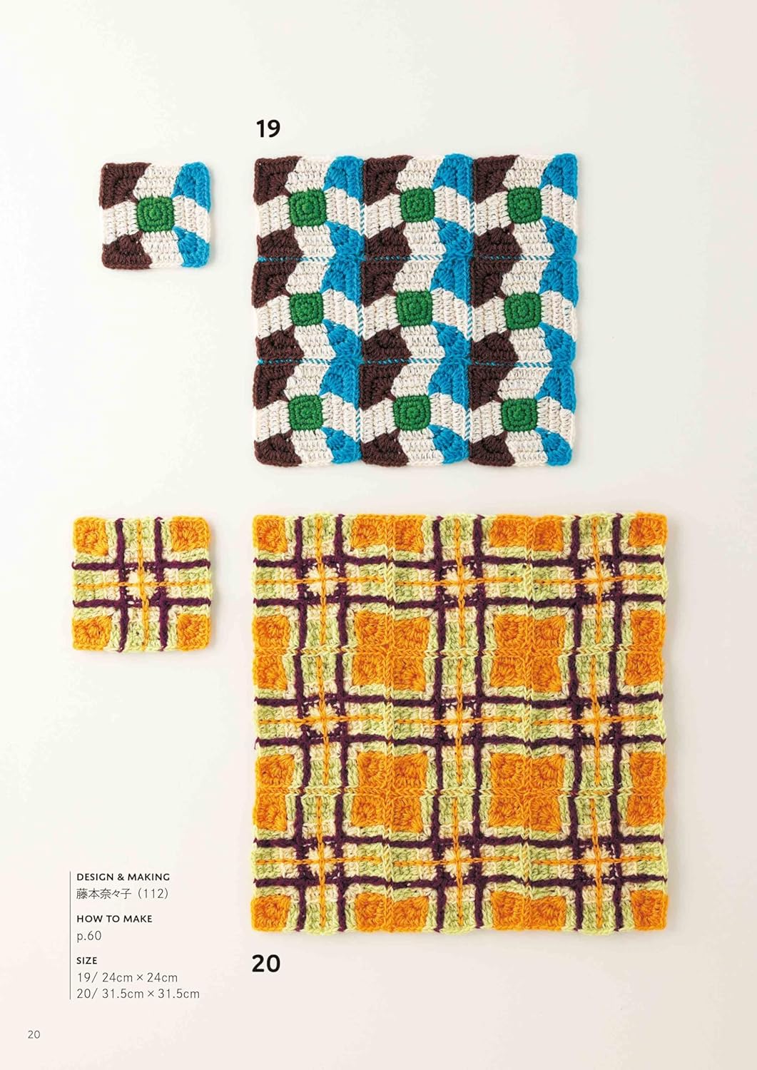 A collection of square motif patterns knitted with triangle, square, and circle patterns using basic granny square knitting and pattern knitting. This book suggests the interesting patterns that can be created by arranging one motif in a row, and the interesting patterns that can be created by changing the appearance of the same motif depending on how it is arranged.